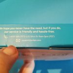 An der unteren Lasche findet man nur noch den Text: „We hope never have the need, but if you do, our Service is friendly and hassle-free.“ Darunter sind nur noch die Kontaktdaten.