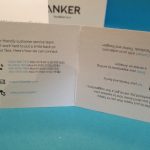 Auf der anderen Seite der Karte steht was du machen kannst, wenn du mit deinem Headset zufrieden bist. Dann kannst (sollst?) du dich nämlich mit den Anker Social Network Seiten verbinden, deinen Freunden von Anker oder deinen Erfahrungen mit Anker erzählen und deine Erfahrungen mit Anker im Internet teilen.