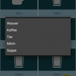 In AQUALERT Premium (oder Aqualert Prämie: Wassertrinken – wie es komisch übersetzt im Playstore heisst), kann man neben schon vorgegebenen Tassen- ,Becher- und Flaschengrößen auch eigene Größen mit verschiedenen Flüssigkeiten eingeben. So hat man immer einen Überblick was man getrunken hat. Die auswählbaren Getränke sind hier Wasser, Kaffee, Tee, Milch und Suppe.