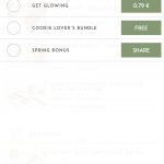 Wem die über 100 Rezepte noch nicht reichen, kann sich unter den Kategorien noch 3 weitere Kategorien dazu holen. Die erste Kategorie „GET GLOWING“ kostet hier 0,79€. Die zweite Kategorie, das „Cookie Lover Bundle“ ist kostenlos und auch die dritte Kategorie „SPRING BONUS“ (Frühlings Bonus) kann man kostenlos bekommen, wenn man die App teilt. Wenn einem ein Rezept gefällt, kann man dieses auch favorisieren, um es später schneller wiederzufinden.