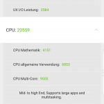 - CPU: 20559 Punkte – CPU wird hier im mittleren Bereich bis High-End angesiedelt. Angeblich guter Multitasking Support.