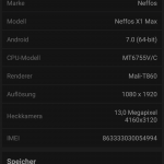 Ansonsten findet man die üblichen Einstellungen, Systemupdates und Informationen. Ein kleiner Trick noch für die, denen das Display eine zu große Auflösung hat: Klickt ein paar mal in den Phone-Informationen auf die Build-Nummer, bis das Entwicklermenü freigeschaltet wurde. Dort findet Ihr nun einen Punkt „Geringste Breite“. Je höher der Wert, desto kleiner die Auflösung. Aber seid etwas vorsichtig – wenn der Wert die minimale oder maximale Einstellung überschreitet, hilft nur ein Zurücksetzen des Neffos X1!