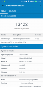 Einfach nur !WOW! Das BlackShark sprengt die Benchmark-Listen! Alle Test’s erhaltet Ihr als Galerie. Getestet wurde mit Antutu, GeekBench 4, GPU Mark sowie 3D Mark. Die Ergebnisse sprechen hier für sich und bedürfen nicht viel Worte.