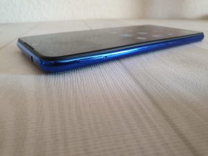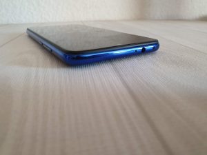 Dann fing ich aber an das Redmi Note 7 weiter zu begutachten. Am rechten Rand befindet die Lautstärkewippe und darunter der Powerknopf, welche sich alle selbst nach 3 Wochen noch sehr gut drücken lassen und am linken Rand befindet sich der Dual-Hybrid-Slot. Diesen kann man entweder mit zwei Nano SIM-Karten oder einer Nano SIM und einer MicroSD Karte bestücken. Ich habe mich für letzteres entschieden und eine Vodafone Karte, sowie 128GB MicroSD Karte eingesetzt. Am unteren Rand findet man wie immer den Ladestecker Eingang, der hier USB Typ-C ist und dieser ist umgeben von einem Mikrofon und einem Lautsprecher. Am oberen Rand befindet sich dann nur noch ein Unterstützungsmikrofon, der 3,5mm Klinkenstecker Eingang und ein Infrarot Port. Letzteren habe ich während meines Tests nicht benutzt, da ich nicht wusste was ich damit anfangen soll.