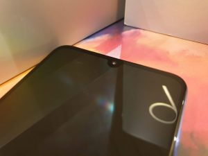Die Notch ist eine Tropfennotch, welche Softwareseitig noch eich bisschen aufgehübscht wurde, so das sie ein bisschen aussieht wie die des OnePlus 6T. Wenn das Display aus ist, ist diese ein bisschen kantiger. Warum Xiaomi das gemacht hat, kann ich an dieser Stelle nicht beantworten. Die Benachrichtigungs LED befindet sich oben am Display, rechts neben der Hörmuschel. Zu meinem Erstaunen ist diese diesmal nicht rund, sondern eckig. Eine andere Besonderheit im Display ist der Fingerprintscanner, der ähnlich wie beim OnePlus 6T im untere Drittel des Xiaomi Mi 9 Displays verbaut wurde. Dazu aber später mehr. Geschützt wird der Digitizer durch Gorilla Glass 6.