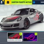 Wer mein Video gesehen hat, hat sicherlich auch bemerkt, dass das Spiel Asphalt 9 vorinstalliert war. Wie sich später heraus stellte, hatte das wohl einen Grund. Denn Besitzer eines ASUS ROG erhalten ein kleines In-Game Geschenk, wenn sie das Spiel das erste mal mit dem ASUS ROG Phone 2 öffnen. So schenkt ROG dem Besitzer eines jeden ROG Phone 2, 30000 Credits, einen Porsche und 2 ROG Decals für den Porsche. Und das eine davon sieht echt cool aus.