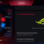 Was ich auch sehr cool finde ist, das man unter dem Reiter Konsole – Systemneleuchtung – Erweiterte Systembeleuchtung einstellen kann, bei was das rückseitige ROG Logo alles aufleuchten soll. So kann man es zum Beispiel im Takt der Musik leuchten lassen, oder auch wenn es lädt, wenn man angerufen wird oder gar wenn man Benachrichtigungen bekommt. Dies ist dann praktisch, wenn der Smartphone Ton aus ist, es mit dem Display aber auf dem Tisch liegt.